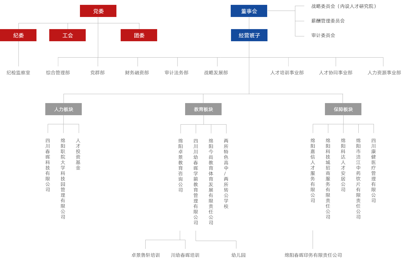 绵阳春晖教育管理有限公司(简称“川幼春晖”)是无码av影片 (原“绵阳教投集团”)与四川幼儿师范高等专科学校战略合作,共同发起成立的集办学、科研、培训于一体,专业从事学前教育投资与管理的国有企业,注册资本5000万元,是人才集团全资子公司。业务板块主要涵盖:幼儿教育管理、幼儿教具教材研发、托儿所服务、单位后勤管理服务、教学设备租赁等。