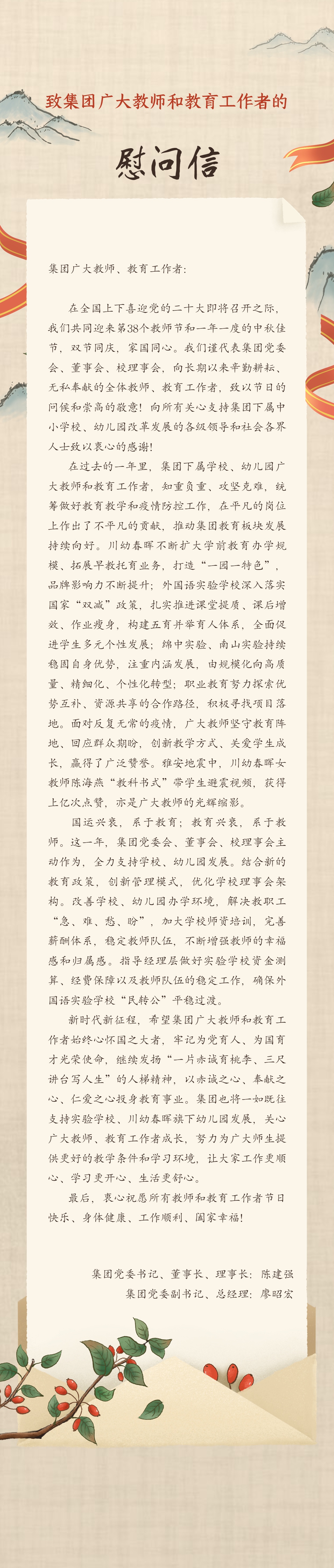 致集团广大教师和教育工作者的慰问信