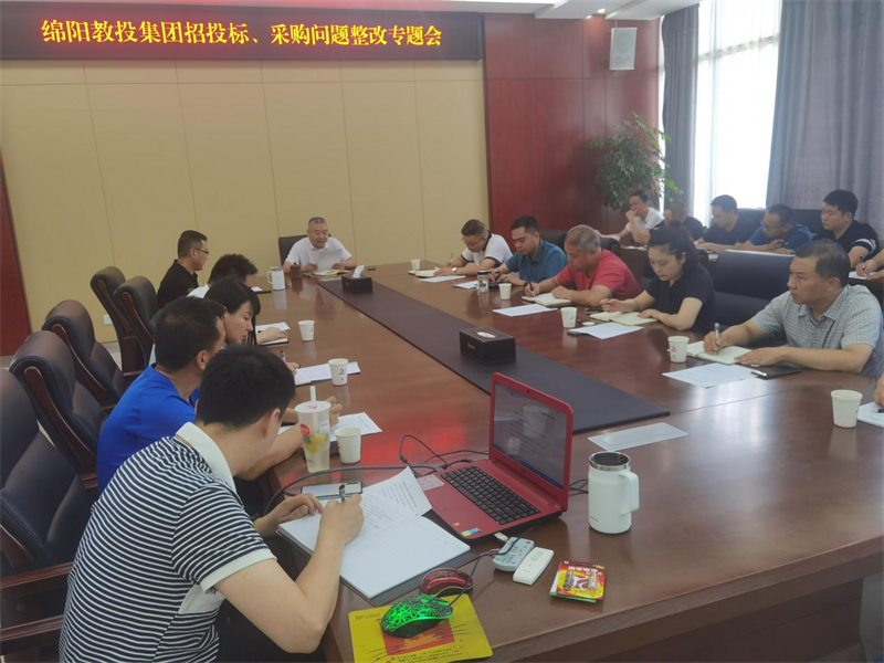 7月21日,教投集团召开招投标、采购问题整改专题会,会议由集团党委副书记蒲昌文主持,集团二级资深经理谢加明,集团公司纪检办、监事办负责人,三所实验学校分管后勤副校长、总务主任,各子公司分管领导和招投标从业人员参加会议。