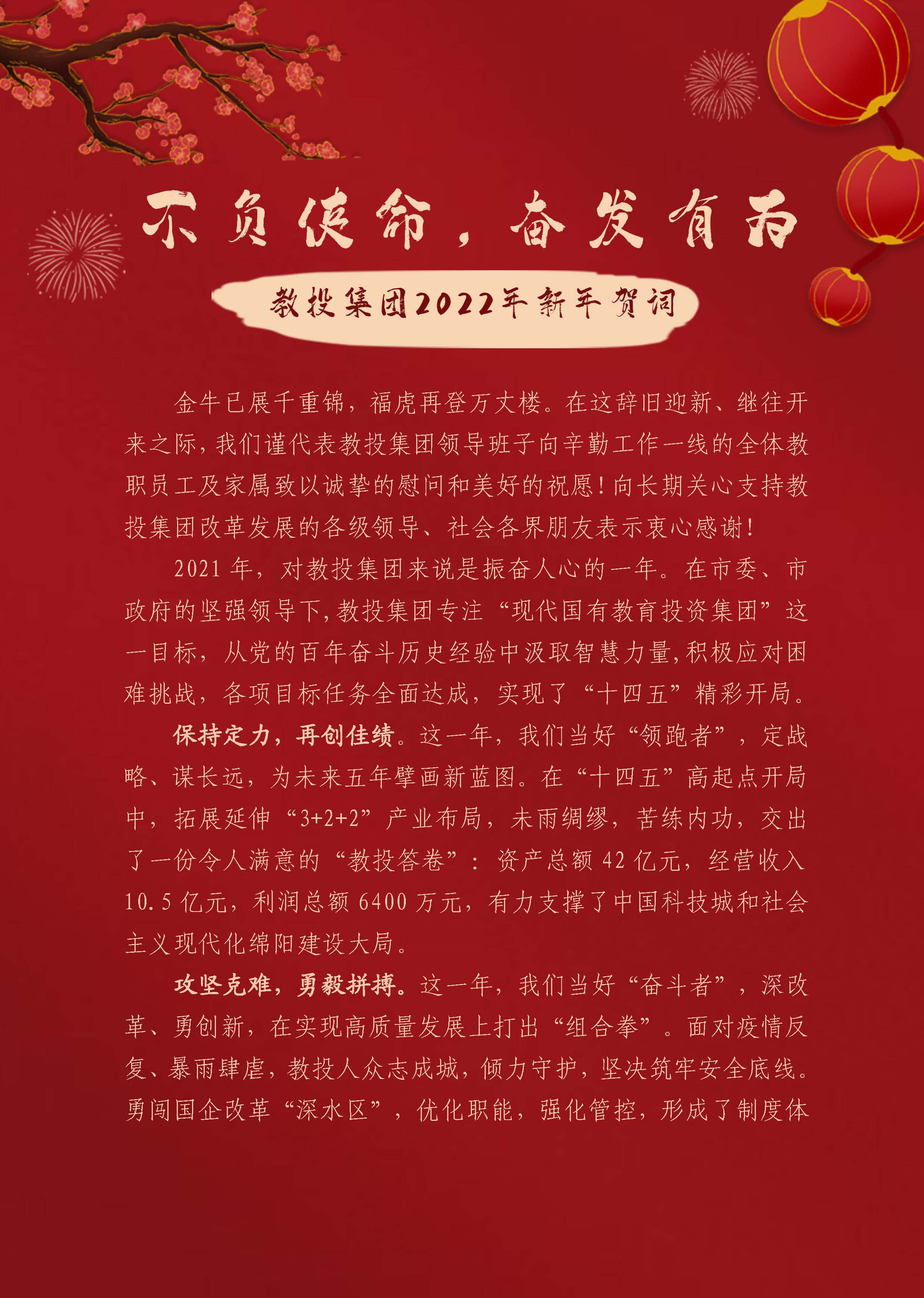 不负使命,奋发有为 | 教投集团2022年新年贺词