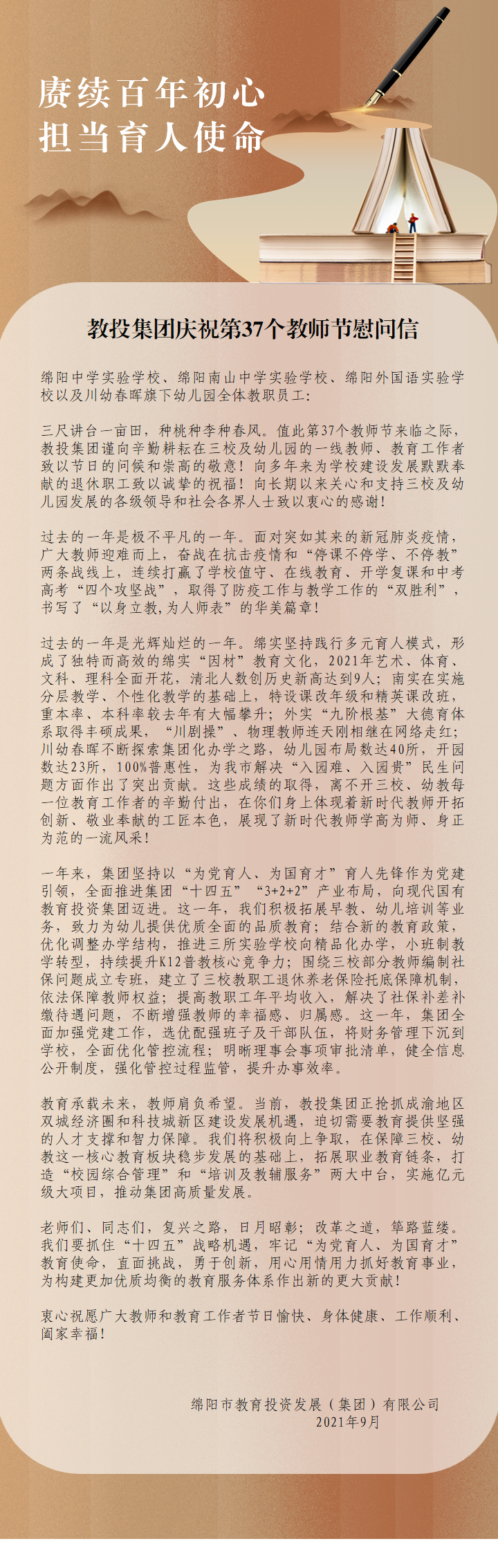 教投集团庆祝第37个教师节慰问信