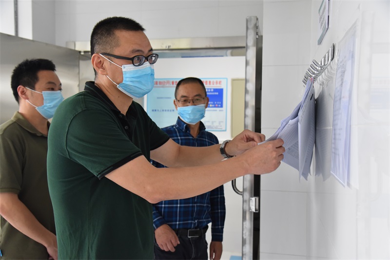 每到一所幼儿园,廖总一行都认真听取幼儿园园长对本学期安全、防疫、防汛等工作汇报,并深入食堂、教室、功能室、门卫室、保健室、幼儿园外围现场,查验园所通风、卫生消毒、安全防护、防疫、防火、防汛工作。检查过程中,廖总一行仔细查看了保健室留样、晨检记录、后勤采购等台账内容,并现场重点排查了汛期洪涝对园所房屋建筑的影响,消防安全隐患等。检查组一行还查看了园内的防疫、节约粮食宣传、园区环境创设等。
