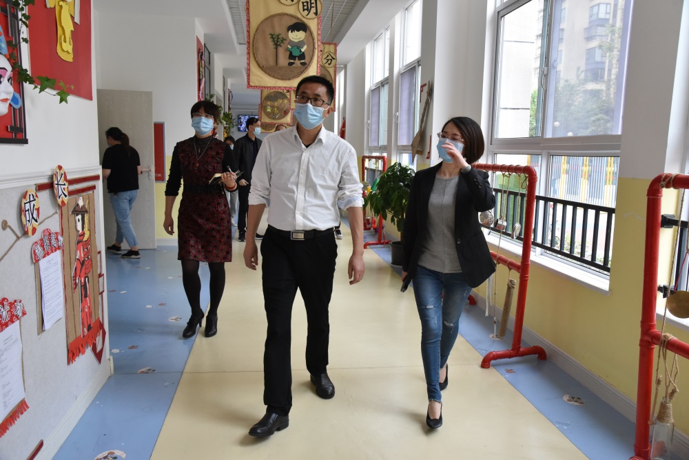 陈董事长详细了解了幼儿园疫情期间的报名流程和报名情况,询问了幼儿园防疫物资准备、教职工返岗、预案演练、卫生消毒,复课人数、复课后幼儿园防疫工作流程与管控情况。听取了园长对疫情防控、食品卫生等相关安全工作的汇报,查看了幼儿园宣传、环创、入离园疫情防控工作、幼儿进餐午睡等细节。