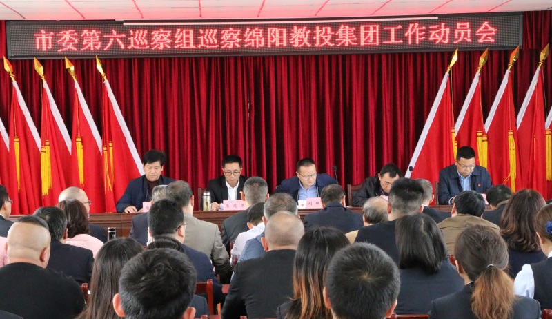 根据市委巡察工作的统一部署,2019年4月17日,市委第六巡察组巡察绵阳市教育投资发展(集团)有限公司工作动员会召开。会上,市委第六巡察组组长范光平对开展巡察工作进行了安排部署,明确了这次巡察工作的主要任务、巡察对象和工作方式,市委巡察工作领导小组成员、市委巡察办主任刘林建作了重要讲话。集团董事长陈建强主持会议并作表态发言。