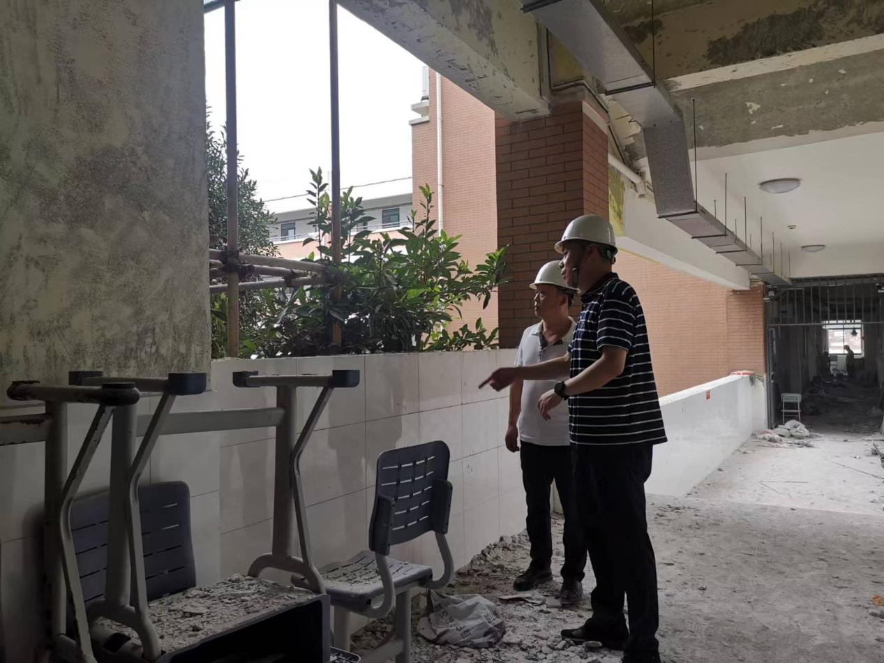 为保证2023年暑期项目按时完工,学校顺利开学,8月18日上午,科达置业执行董事李昌隆前往公司暑期项目现场,检查项目安全、质量、进度等相关工作。