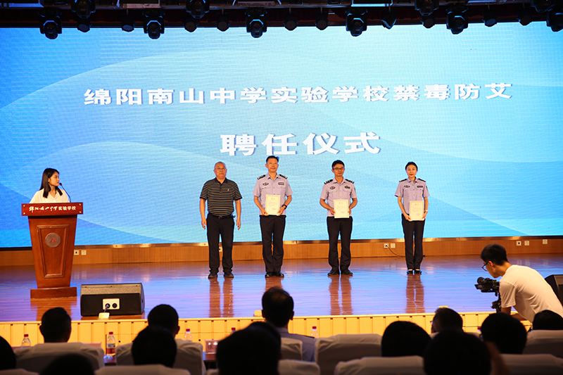 四川省新华强制隔离戒毒所党委书记、所长贾良伦,四川省戒毒管理局三级调研员陈德,绵阳市禁毒办专职副主任任溢,绵阳市禁毒办预教指导室主任张晓松,四川省新华强制隔离戒毒所党委委员、副所长张华,绵阳市教育和体育局体卫艺科科长林旭莅临我校指导。绵阳南山中学实验学校党委书记、校长谭世贵,党委委员、副校长杜敏,党委委员、政教处主任丁劲松,政教处副主任李林以及学校政教处全体成员、学生代表,省新华强戒所相关领导、民警代表和社区戒毒志愿者代表出席了本次活动。