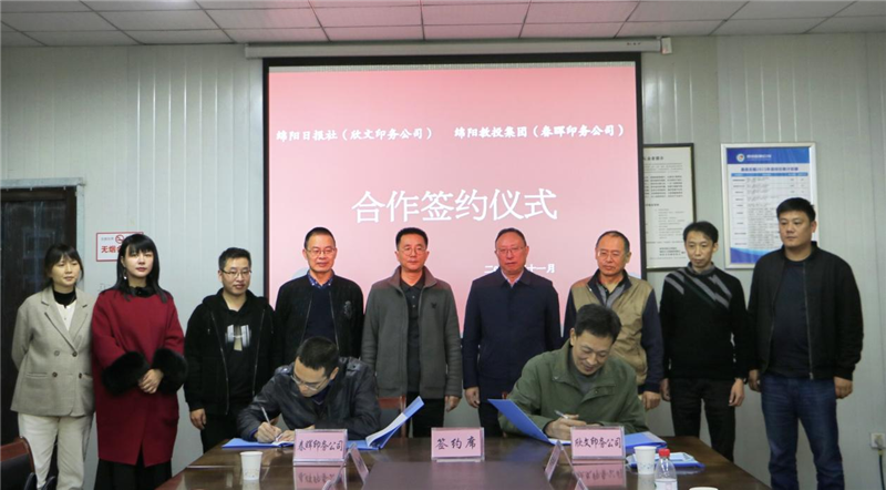 11月3日,绵阳春晖印务有限责任公司与绵阳市欣文印务有限公司合作签约仪式在春晖印务公司举行。教投集团党委书记、董事长陈建强,绵阳日报社党组书记、社长周华出席签约仪式。嘉信后勤公司执行董事、总经理万承刚,欣文印务公司副总经理张洪中代表双方签约。