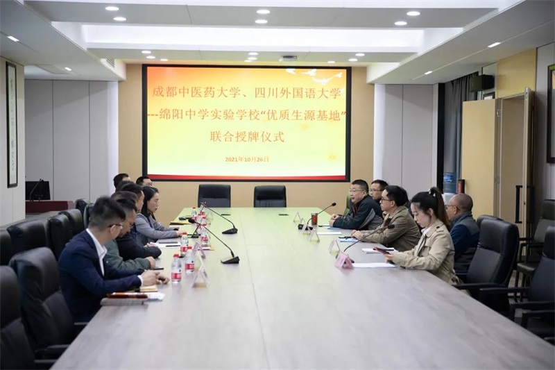 10月26日,成都中医药大学、四川外国语大学一行8人,来到绵阳中学实验学校,举行了与绵阳中学实验学校“优质生源基地”授牌仪式,旨在通过交流合作,优势互补,成为常态化的互动机制,为成绵渝教育发展贡献力量,为成绵渝经济文化圈提供人才支撑。