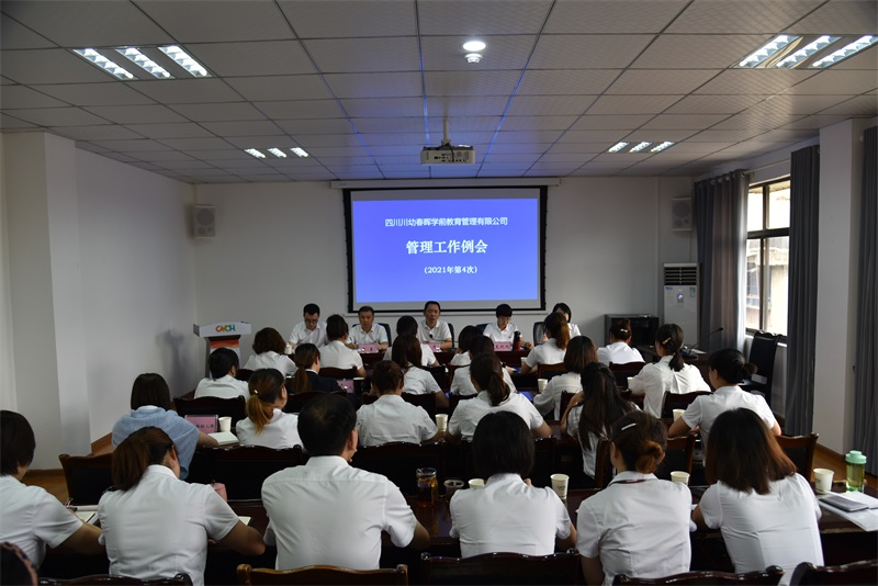 8月30日,川幼春晖召开2021年第4次管理工作例会,总结开学检查工作,安排部署新学期工作。川幼春晖董事长、总经理陈清出席会议并讲话。公司全体干部职工、各幼儿园管理层参加会议。