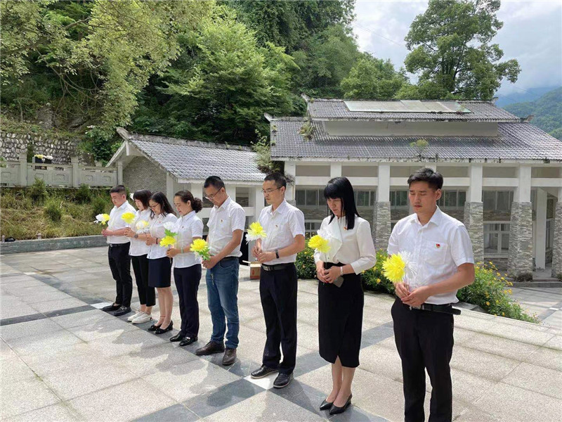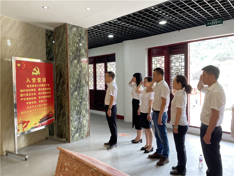 在北川红军长征纪念馆,在讲解员精心讲解下,通过观看图片和影视资料以及记录历史的实物,大家详细了解红四方军在北川的战斗党史,追忆红军当年在北川修桥架梁,保障北川峡谷道路通畅,为两军胜利会师作出的巨大贡献。北川人民热情为红军筹粮筹物资,肩挑背扛为前线运送粮食、武器和辎重等,并积极报名当兵入伍,参与到红军长征队伍中,北川人民为红军长征的胜利作出了巨大的牺牲。全体党员同志重温了入党誓词