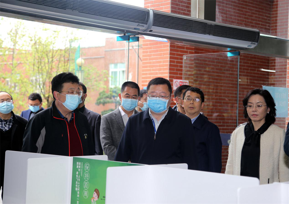 元方市长一行视察了防疫物资储备室和学校食堂分隔式用餐区域,并深入细致地检查了学校校园卫生情况。元方市长高度关注师生健康安全,仔细询问了学校防疫防控物资是否能够满足师生需要、学校的学生硬件生活保障是否存在困难等问题,并反复强调,学生开学复课涉及千家万户,事关疫情防控大局,决不可掉以轻心,学校要时刻把学生的生命安全放在第一位,尽最大努力为学生创造最佳的学习和生活环境。同时,要彻底开展校园环境卫生整治,科学合理安排学生就餐住宿,稳妥稳慎组织学生课间活动,精细精准做好图书馆、体育馆、活动室等场所分流管理,避免学生交叉聚集;要全力加强防疫物资储备,切实保障学校口罩、体温计、消毒液等必备防控物资需求,确保校园整洁卫生、学生学习生活正常稳定,安全无虞。