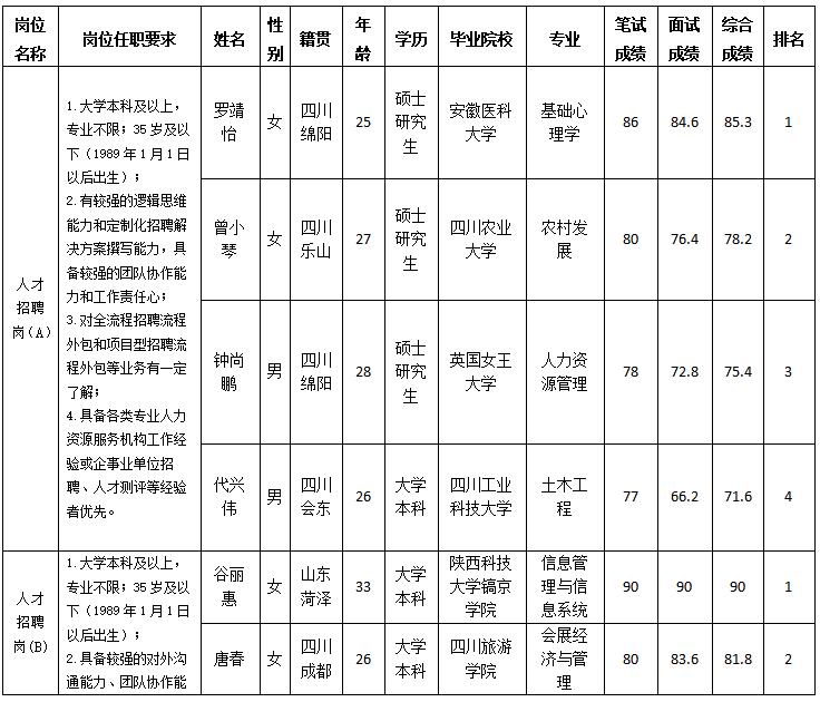 无码av影片 关于招聘综合管理岗等岗位测试成绩的公示