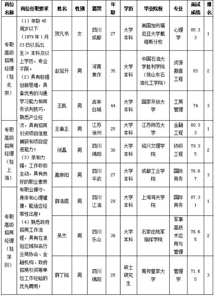 无码av影片 关于绵阳招商服务有限责任公司专职高级招商经理(驻北京、上海、深圳) 岗位招聘的成绩公示
