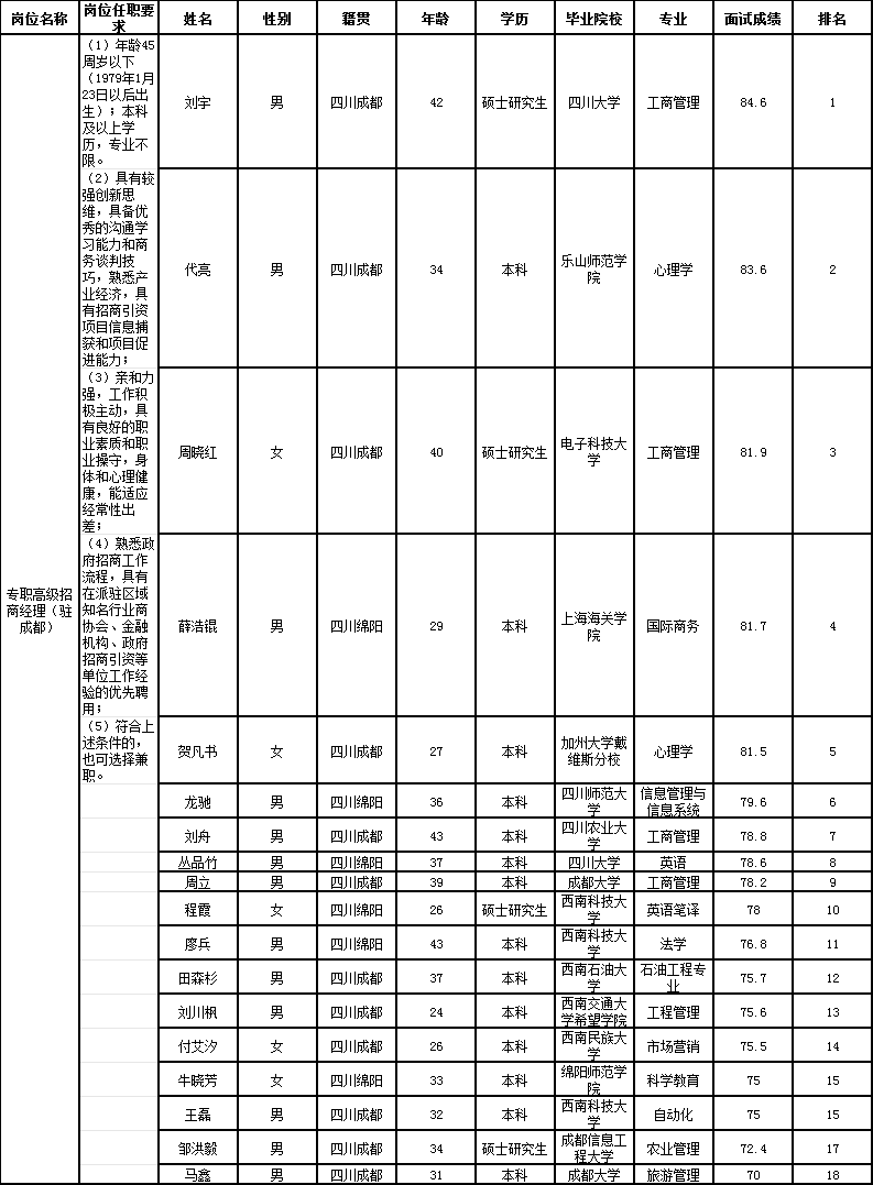 无码av影片 关于绵阳招商服务有限责任公司总经理及专职高级招商经理(驻成都)岗位招聘的成绩公示