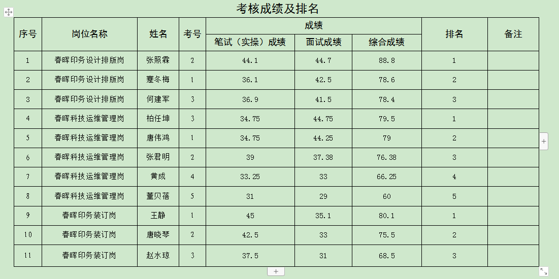 绵阳春晖教育管理有限公司关于招聘保育、保安 岗位测试成绩的公示(第四批)