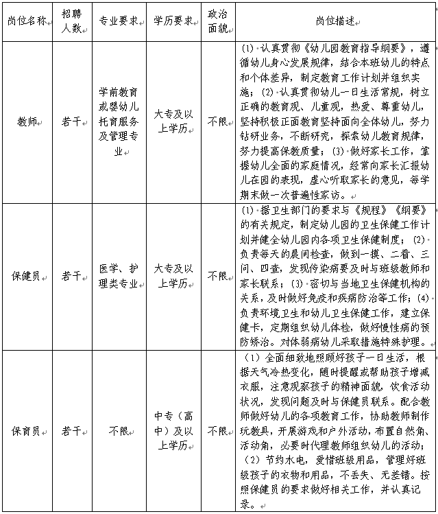 4.技能要求:熟悉幼儿园保育常规工作。