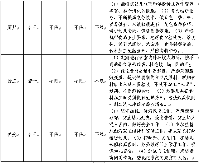 (3)幼儿园后勤岗:考试为面试。