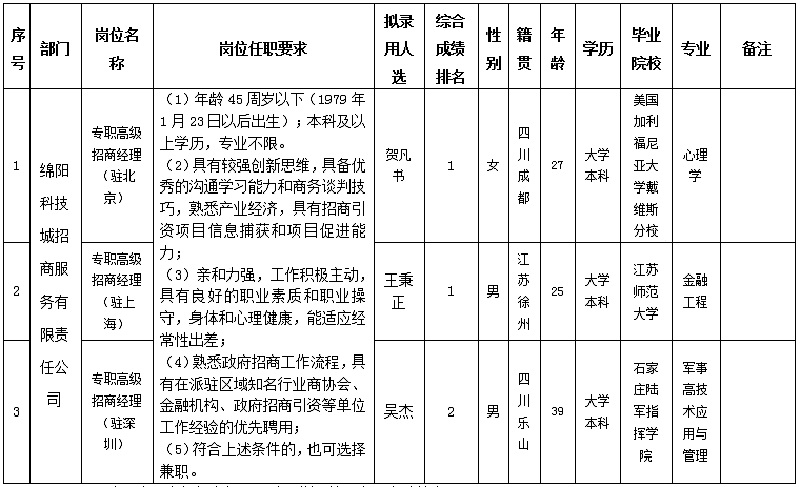 无码av影片 关于绵阳科技城招商服务有限责任公司专职高级招商经理(驻北京、上海、深圳)岗位招聘的拟录用公示