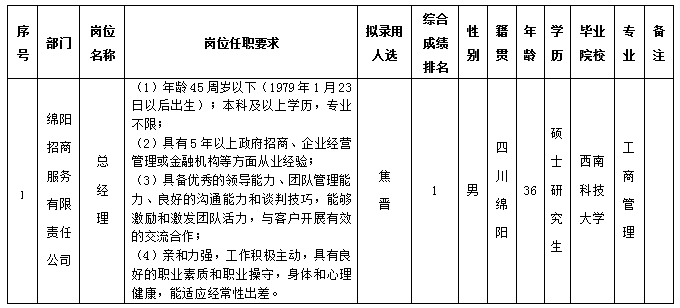 无码av影片 关于绵阳招商服务有限责任公司总经理岗位招聘的拟录用公示
