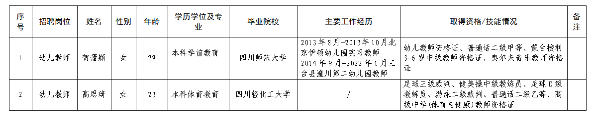附件:川幼春晖幼儿教师岗位拟聘用人员名单(第五批)