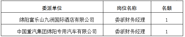 结合绵阳市投资控股(集团)有限公司绵专公司和富乐山酒店选聘委派财务经理前期简历收集情况和招聘工作实际,现将岗位报名截止时间延长至2023年7月28日,具体公告如下。