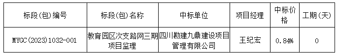 教育园区次支路三期项目监理中标结果公告