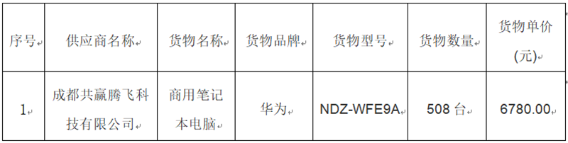 “绵中实验、南山实验笔记本电脑采购”中标公告