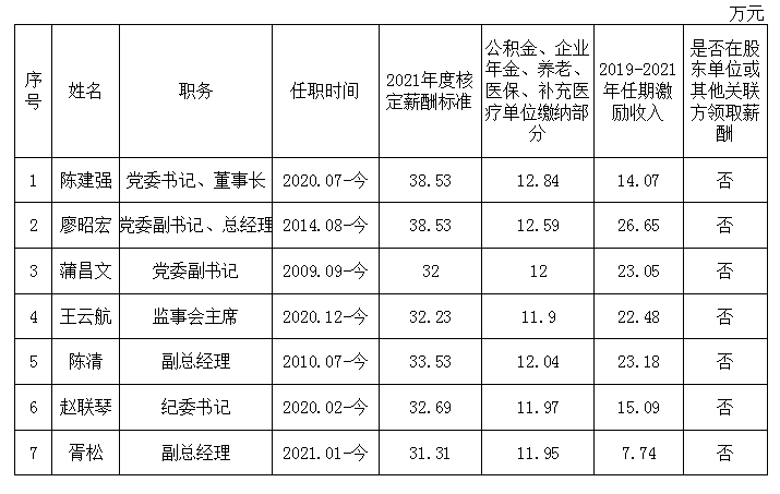 人才集团企业负责人2021年度薪酬及2019年-2021年任期激励的情况