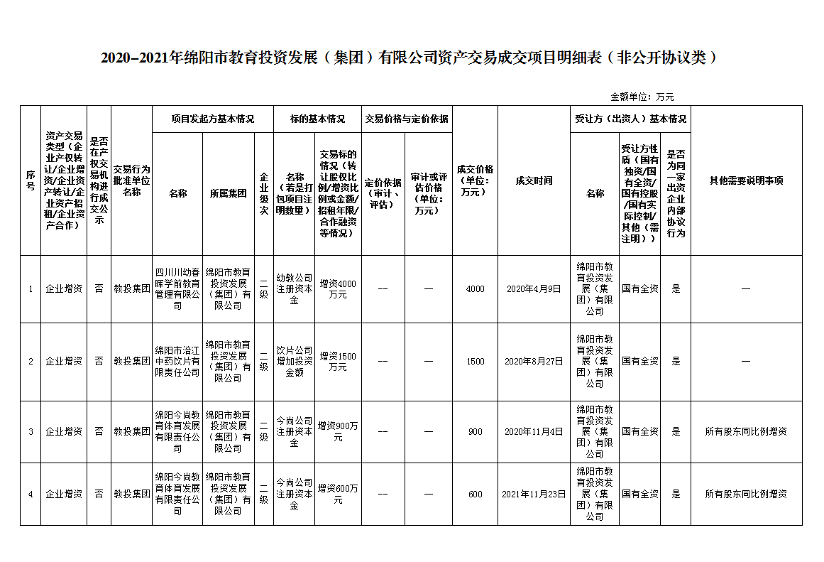 2020-2021年绵阳市教育投资发展(集团)有限公司资产交易成交项目明细表(非公开协议类)