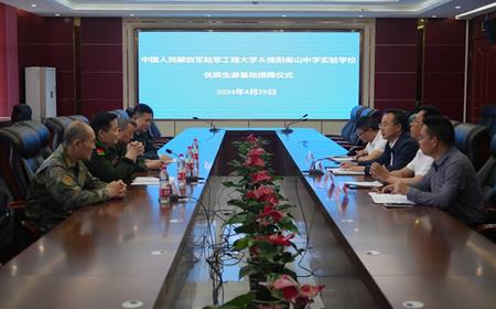 4月29日下午,中国人民解放军陆军工程大学与绵阳南山中学实验学校生源基地校签约授牌仪式在南实行政楼会议室举行。绵阳南山中学实验学校党委书记李芝猛,中国人民解放军陆军工程大学通信工程学院院长徐伟出席仪式。李芝猛致欢迎辞,他代表学校热烈欢迎徐伟一行莅临南实,并真挚感谢中国人民解放军陆军工程大学对绵阳南山中学实验学校的关注和支持。他讲到,长期以来,绵阳南山中学实验学校尊重教育规律,发展学校特色,尊重学生...
