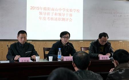 2016年2月26日下午,我校在第二学术厅召开了“绵阳南山中学实验学校2015年工作述职报告”,会议由谭世贵校长主持,市教育体育局基教科李长春科长、民办教育科王开斌科长出席了本次会议。大会先由李长春科长代表教体局向参会的全体教职员工阐明了本次会议流程:一是听取谭世贵校长对2015年学校及其个人的工作述职报告;二是由全体参会人员对学校及谭校长个人在2015年所开展的工作进行考核评定。谭世贵校长的述职...