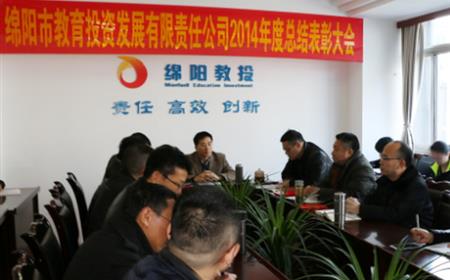 2015年2月15日下午,教投公司举行2014年度总结表彰大会,总经理廖昭宏主持会议。首先,党总支书记、副总经理田仕富宣读了《绵阳市教育投资发展有限责任公司关于2014年度先进集体和个人的表彰决定》。颁奖仪式正式开始,董事长颁发“集体贡献奖”,工程项目部和投融资部获奖。副总经理田仕富、蒲昌文、郭劲、王云航、陈清颁发“先进个人奖”。刘红光、文小枪、王文艳、杨晓兰获经营管理工作先进个人奖;胥松、龙祥获...