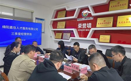 为全面总结三季度经营工作,安排部署四季度重点工作,奋力冲刺年度目标任务,10月17日上午,嘉信人服公司召开2023年三季度经营例会。公司执行董事、总经理万承刚主持会议,公司班子成员、中层干部参加会议。会议通报了前三季度经营指标及重点工作完成情况,各部门汇报三季度工作开展情况、存在的问题和下一步工作计划,班子成员对分管领域工作进行了点评,对四季度重点工作进行了安排部署。万承刚对前三季度取得的成绩和各...