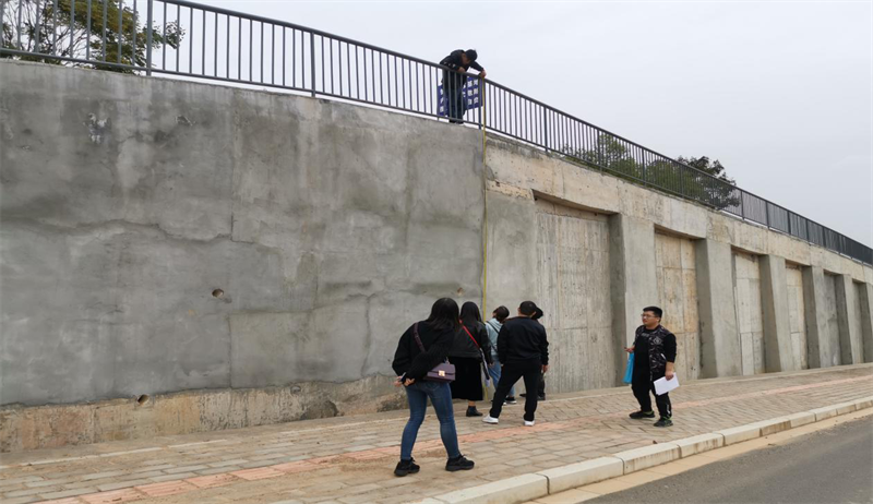 (现场测量护坡挡墙)