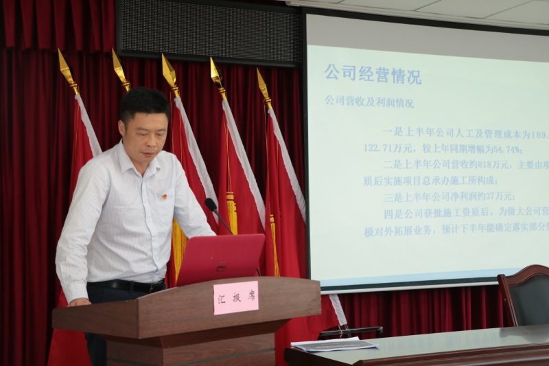 图为科达置业公司汇报上半年项目投资工作情况、园区土地开发工作情况