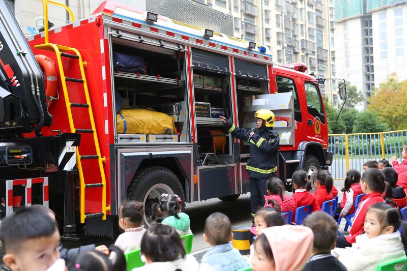 针对幼儿年龄小、好奇心强、理解能力较低的特点,消防员采用讲故事、现场模拟、亲身体验等方式,向小朋友们介绍了几种常用的消防工具及使用方法,并让幼儿园小朋友零距离体验消防器材,让孩子们亲身体验“火灾现场”,加强自我保护能力。