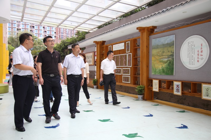 9月16日省委宣传部公民思想道德建设处处长、一级调研员游承陆带领团队对绵阳外实建设四川省青少年优秀传统文化传习基地(戏曲曲艺类)工作情况进行调研。调研组一行先后参观了学校少儿艺术院、艺术长廊、剪纸工作坊、川剧社等。