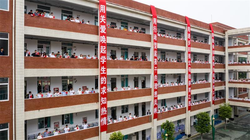 全校四个年级共计万余师生,在校党委成员和全体行政的带领下,分四个会场,志园、行园、学园、搏园同声一气,高亢嘹亮的“我爱你,祖国”构成了华美隽永的绵实咏叹调。校园里红旗招展,校园里歌声嘹亮,绵实人不忘初心、牢记使命!以雄鹰之姿,博翔云霄,奔赴远大前程。以凌云之志,在奋斗中学习、于学习中成长。