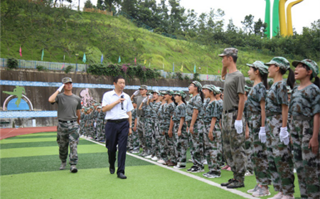 为锻炼学生坚强的意志品质,培养学生吃苦耐劳、团结拼搏、勇于进取的奋斗精神,近日,绵阳外实2020年学前教育暨素质拓展成果表演在学校操场隆重举行。上午九时三十分,随着总教练的一声哨响成果表演正式拉开了序幕。参训队穿着统一的迷彩服,精神饱满地排列着整齐的方阵,等待接受领导和老师的检阅,他们即将交上初中阶段第一份答卷。“立正!”“稍息!”“报数!”“向中看齐!”“向前看!”“跨立!”“蹲下!”“向左转!...